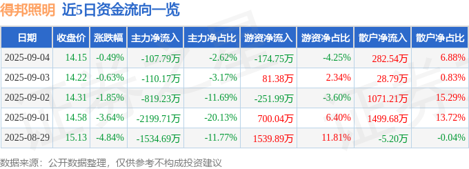 kaiyun证券之星消息,截至2025年9月4日收盘,得邦照明(603303)报收于14.15元,下跌0.49%,换手率0.61%,成交量2.9万手,成交额4109.12万元。